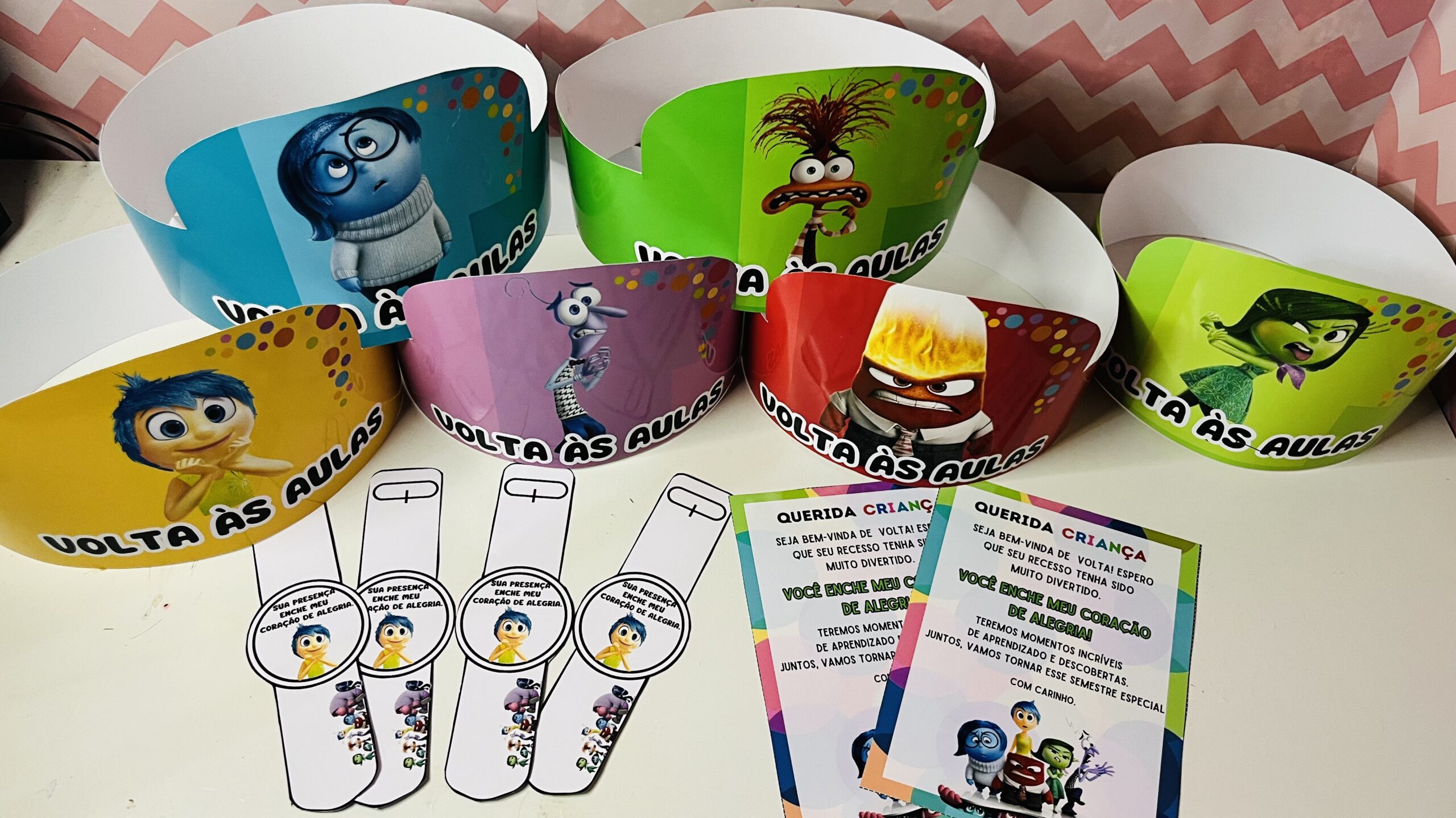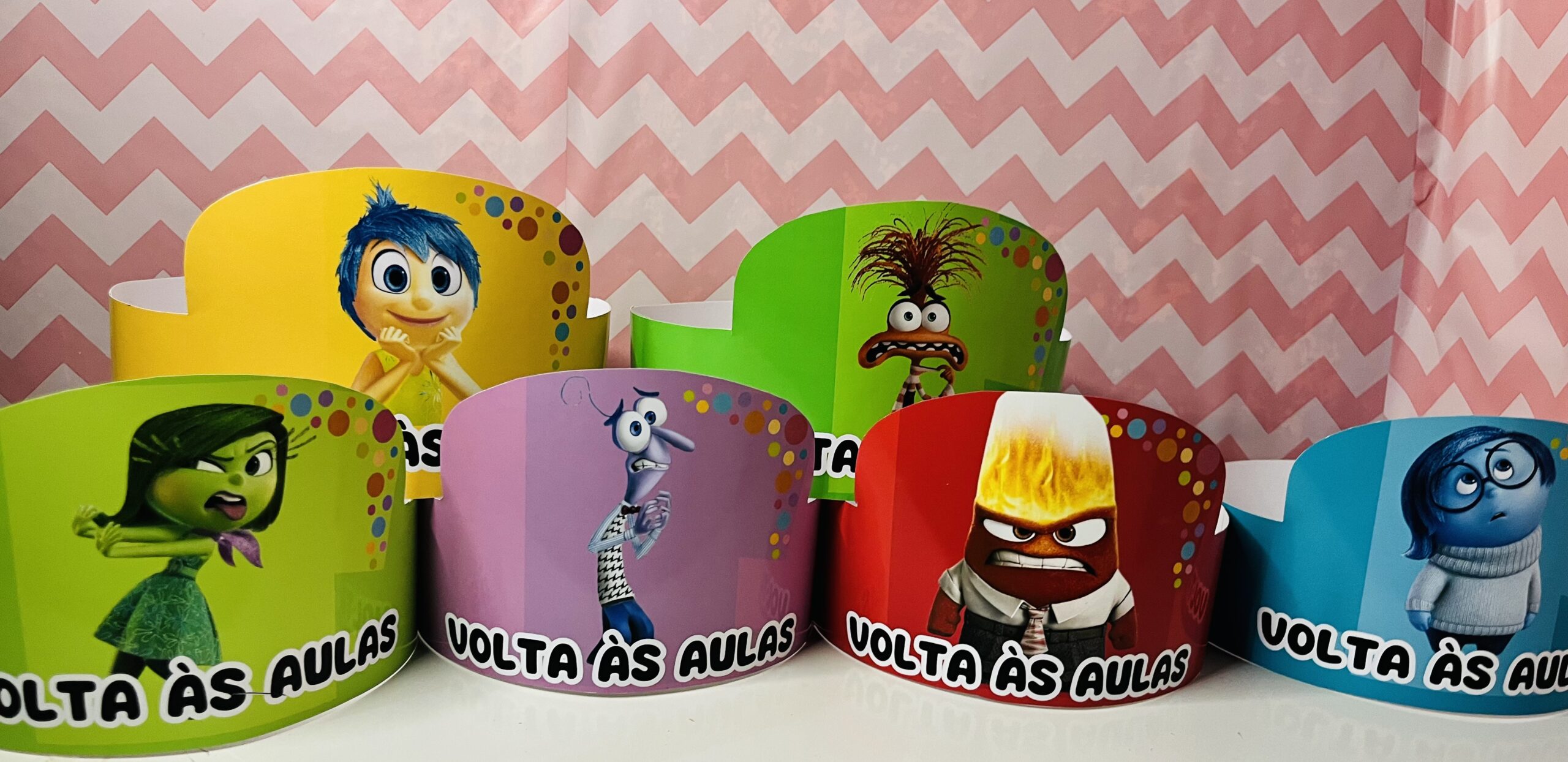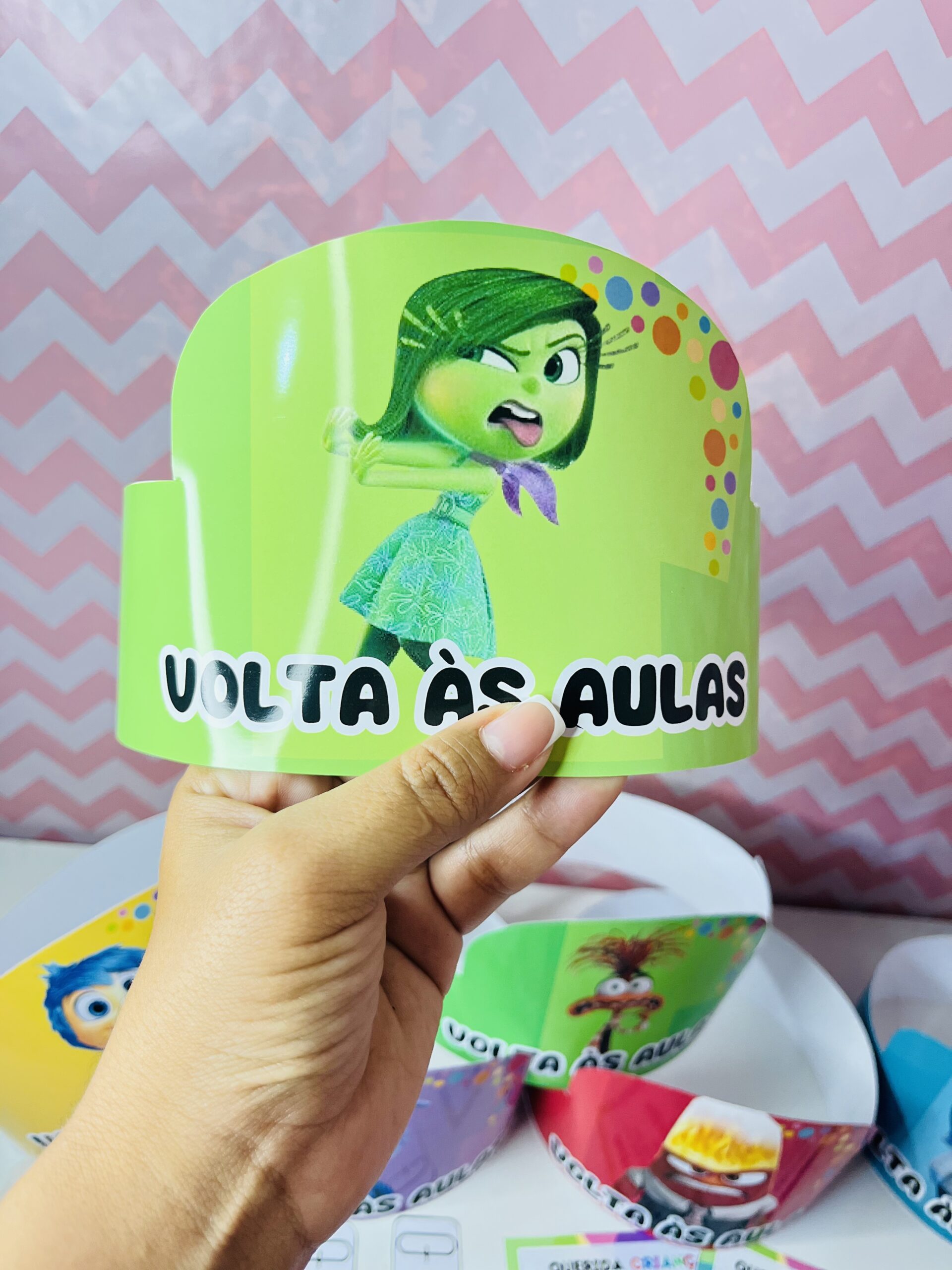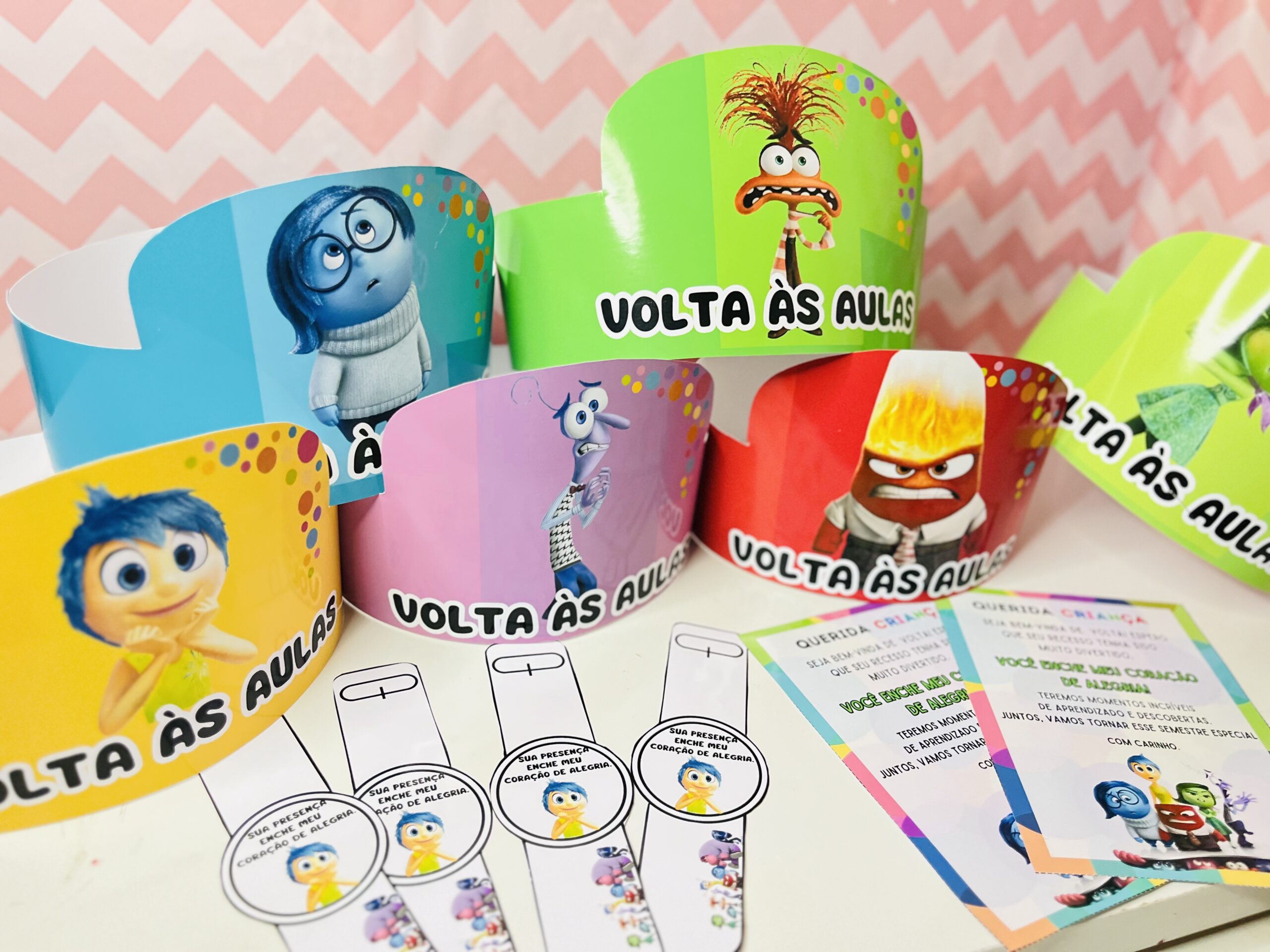 kit contém: 🌈6coroas com os personagens divertidamente. 🌈Molde para relógio do tema. 🌈Cartão