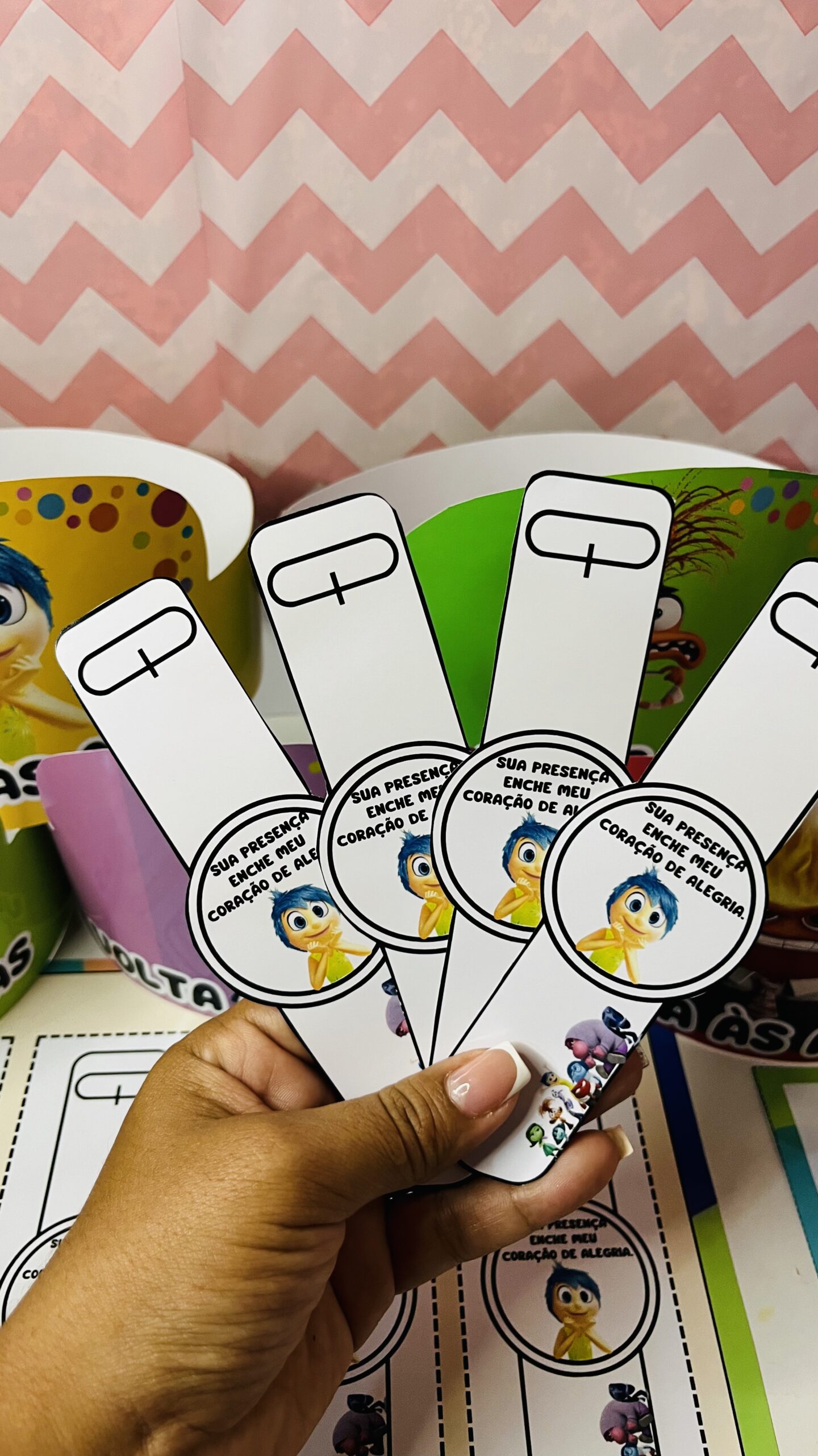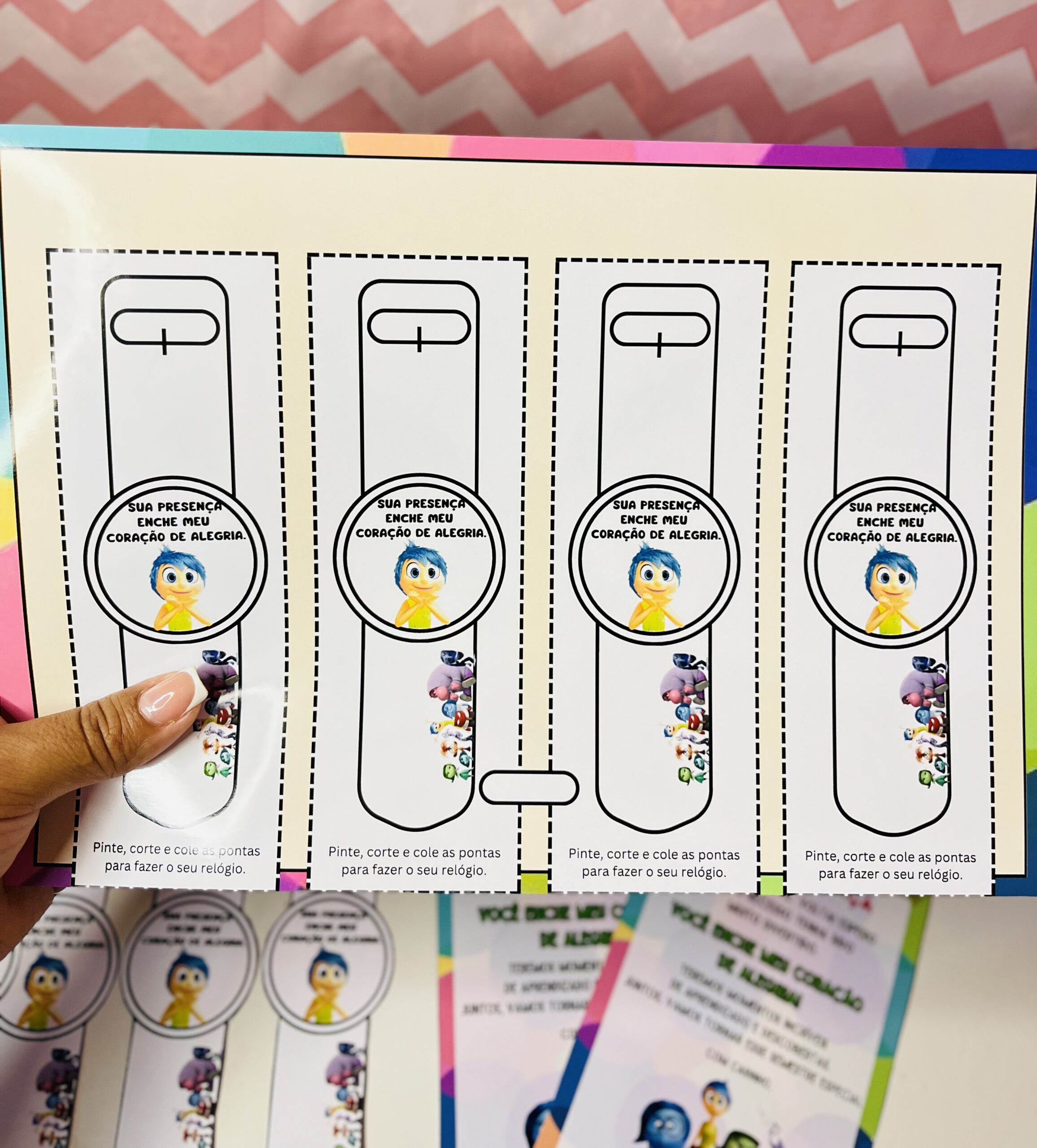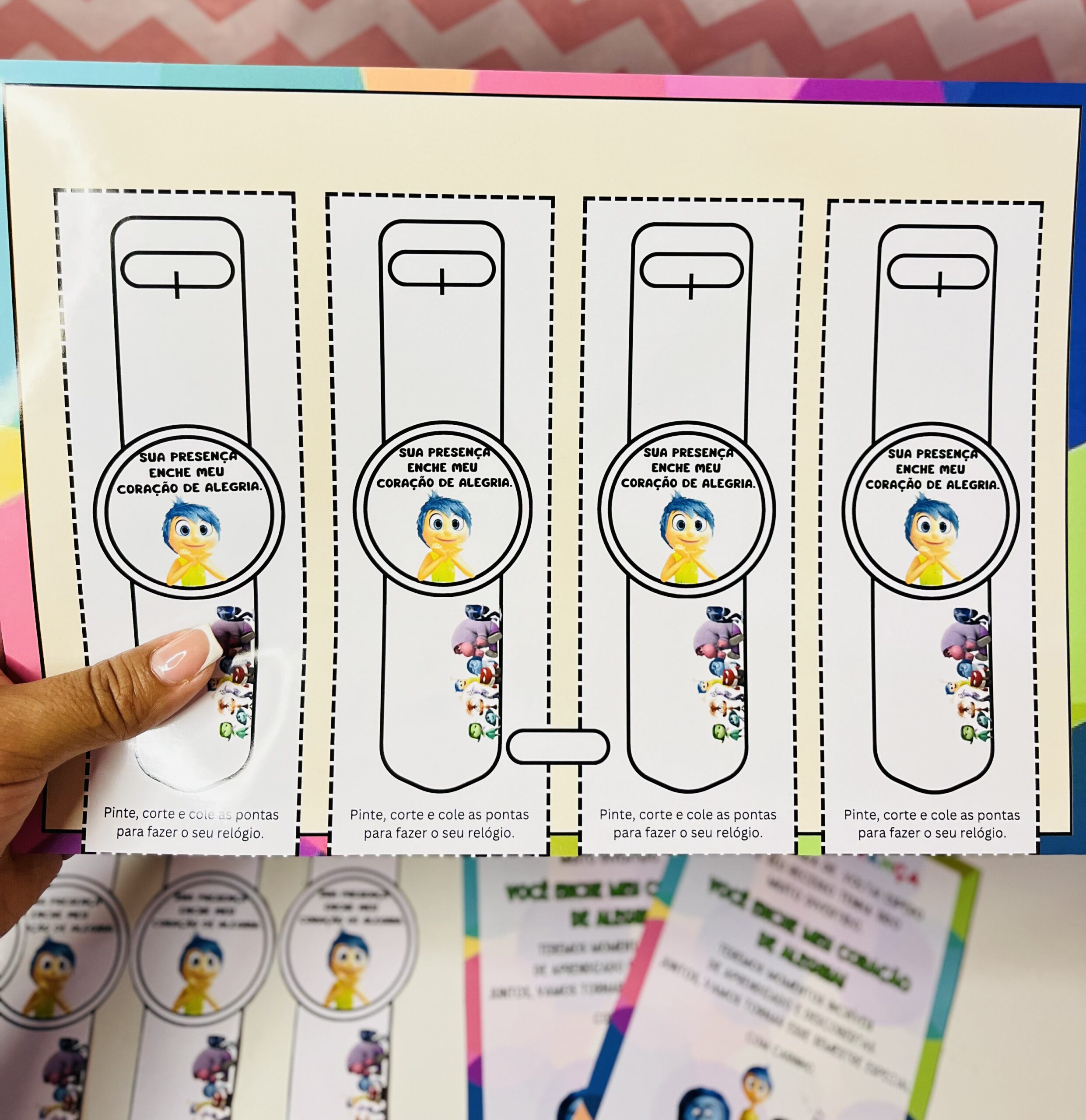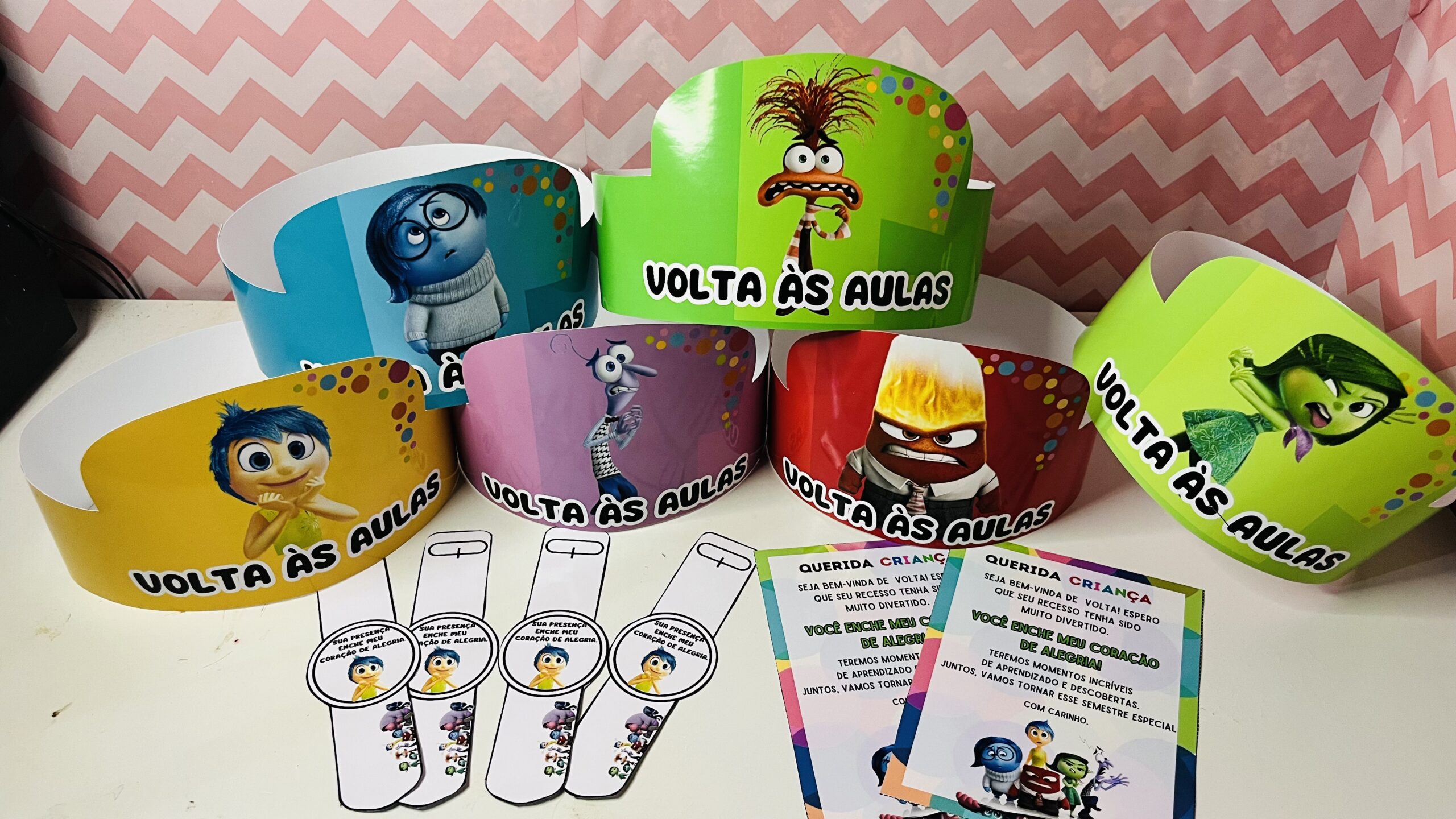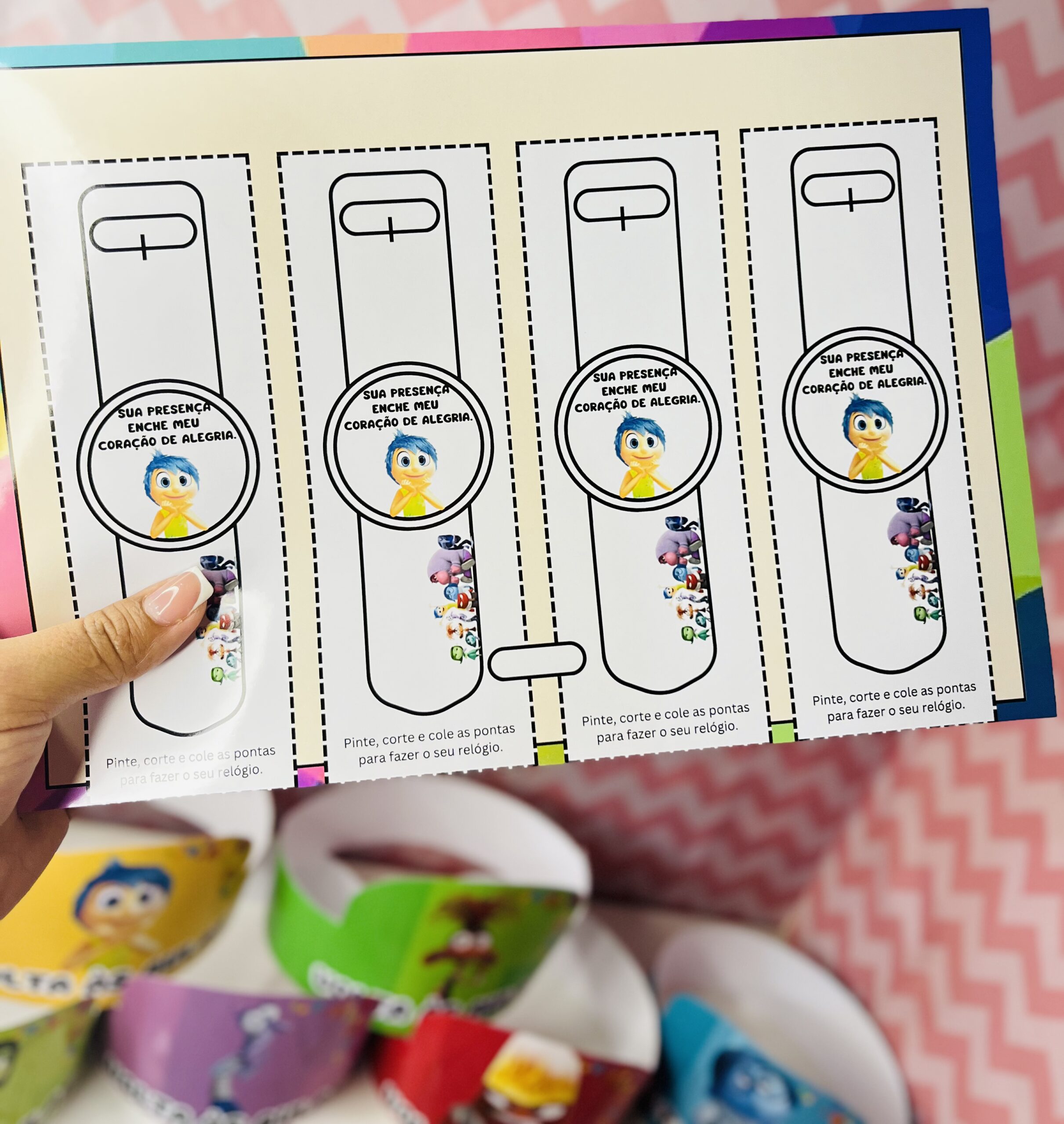 kit contém: 🌈6coroas com os personagens divertidamente. 🌈Molde para relógio do tema. 🌈Cartão