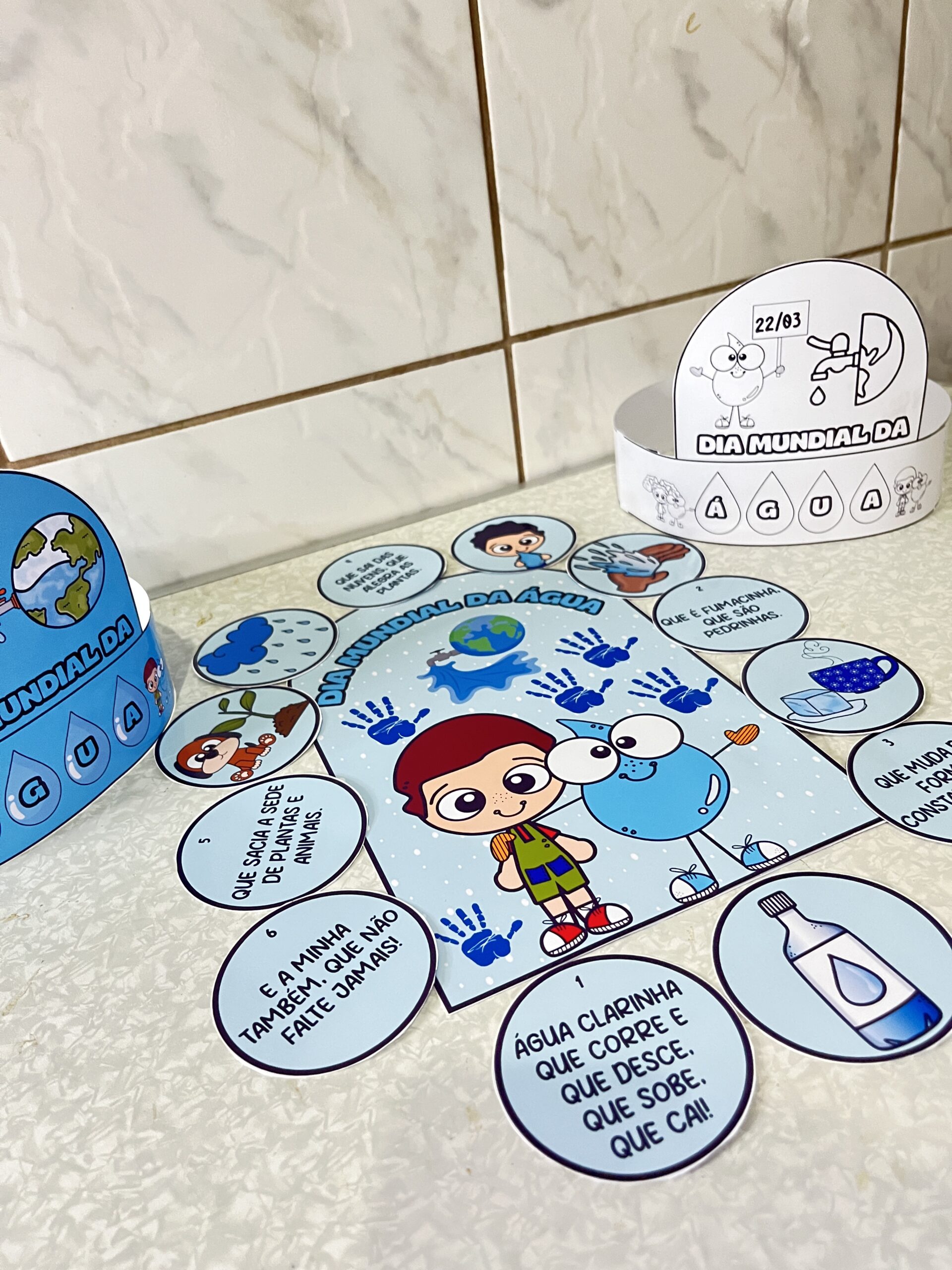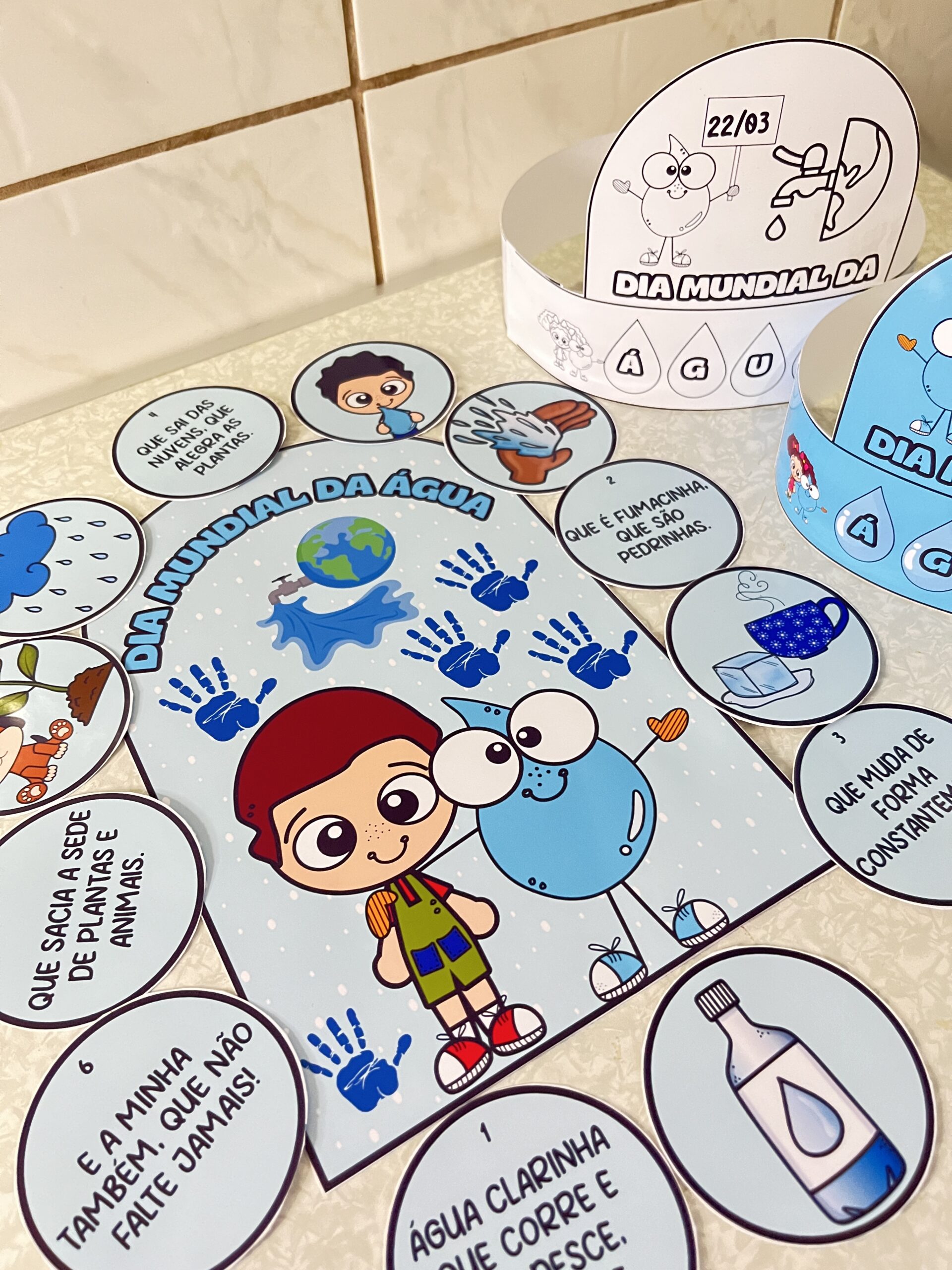 💦 Ensinar sobre a importância da água nunca foi tão divertido! Apresentamos um kit educativo perfeito para trabalhar o Dia da Água com as crianças de forma lúdica e envolvente.