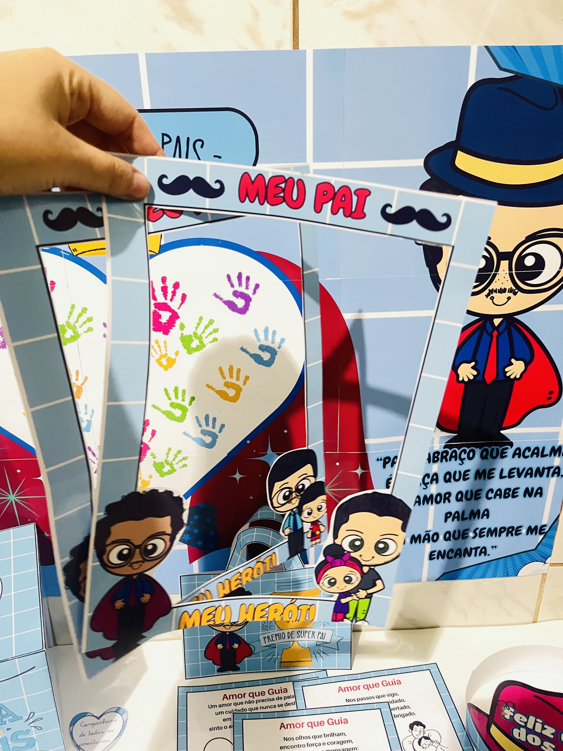 ✅ Painel Interativo: As crianças pintam as mãozinhas e colam dentro do coração no painel, criando um mural cheio de amor para emocionar os papais!