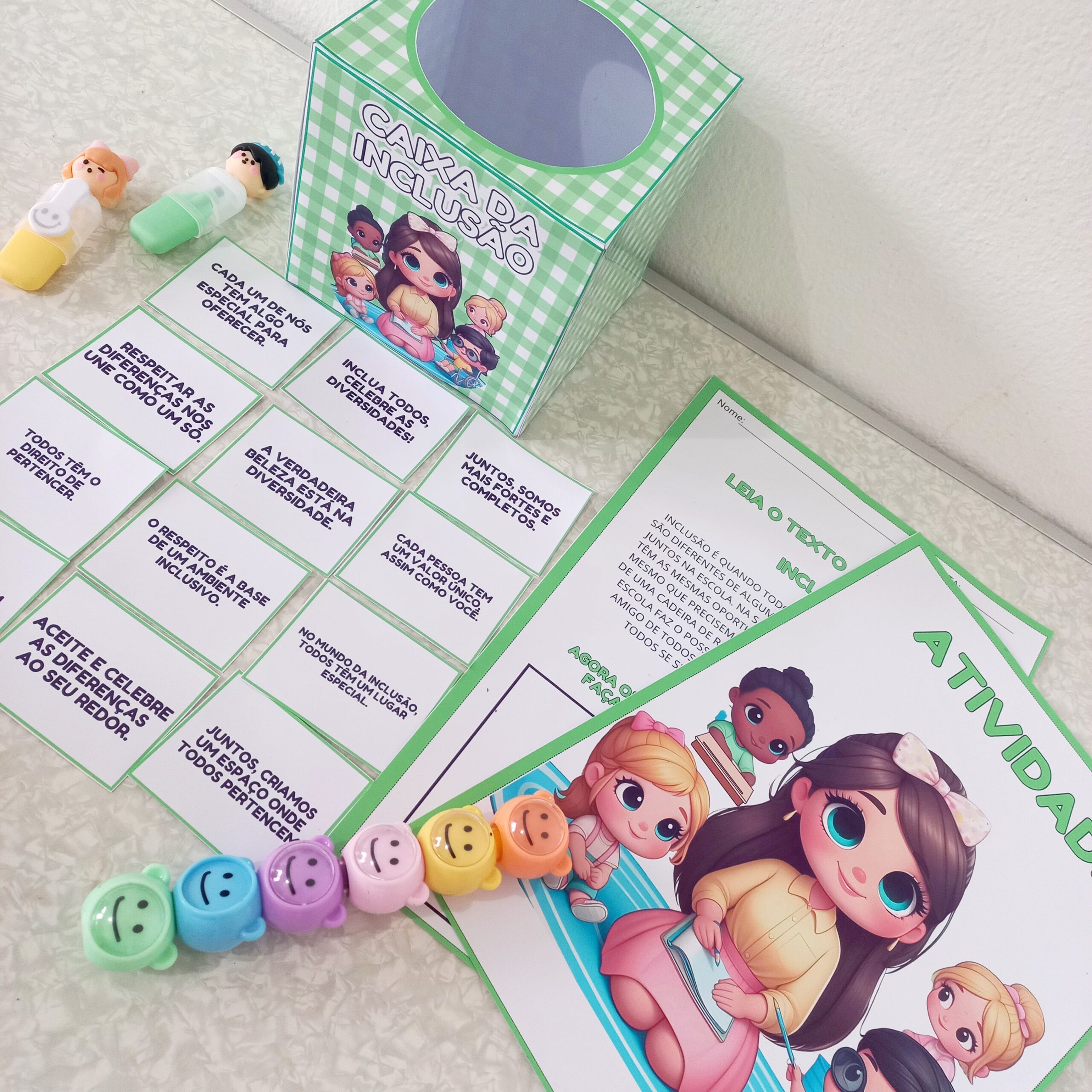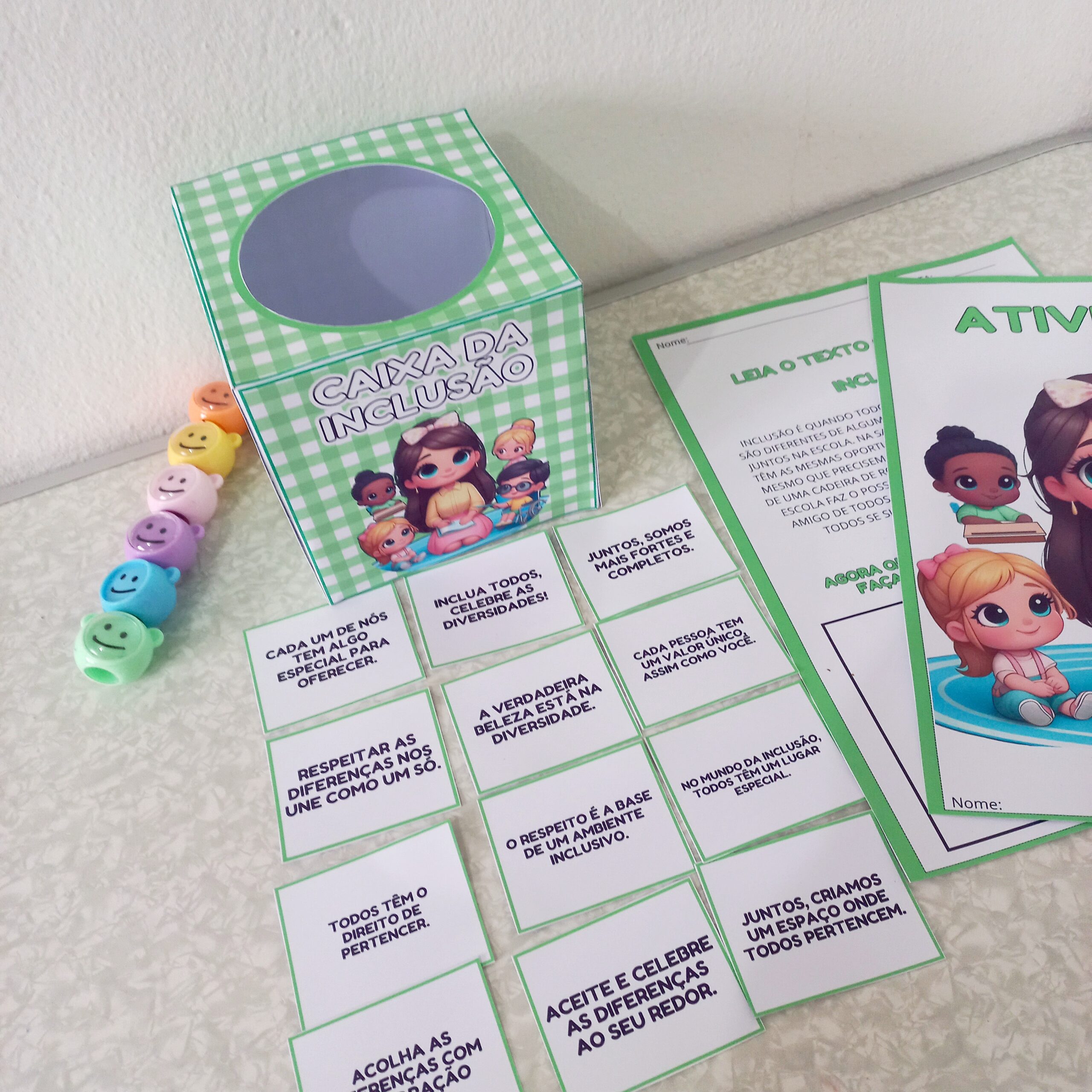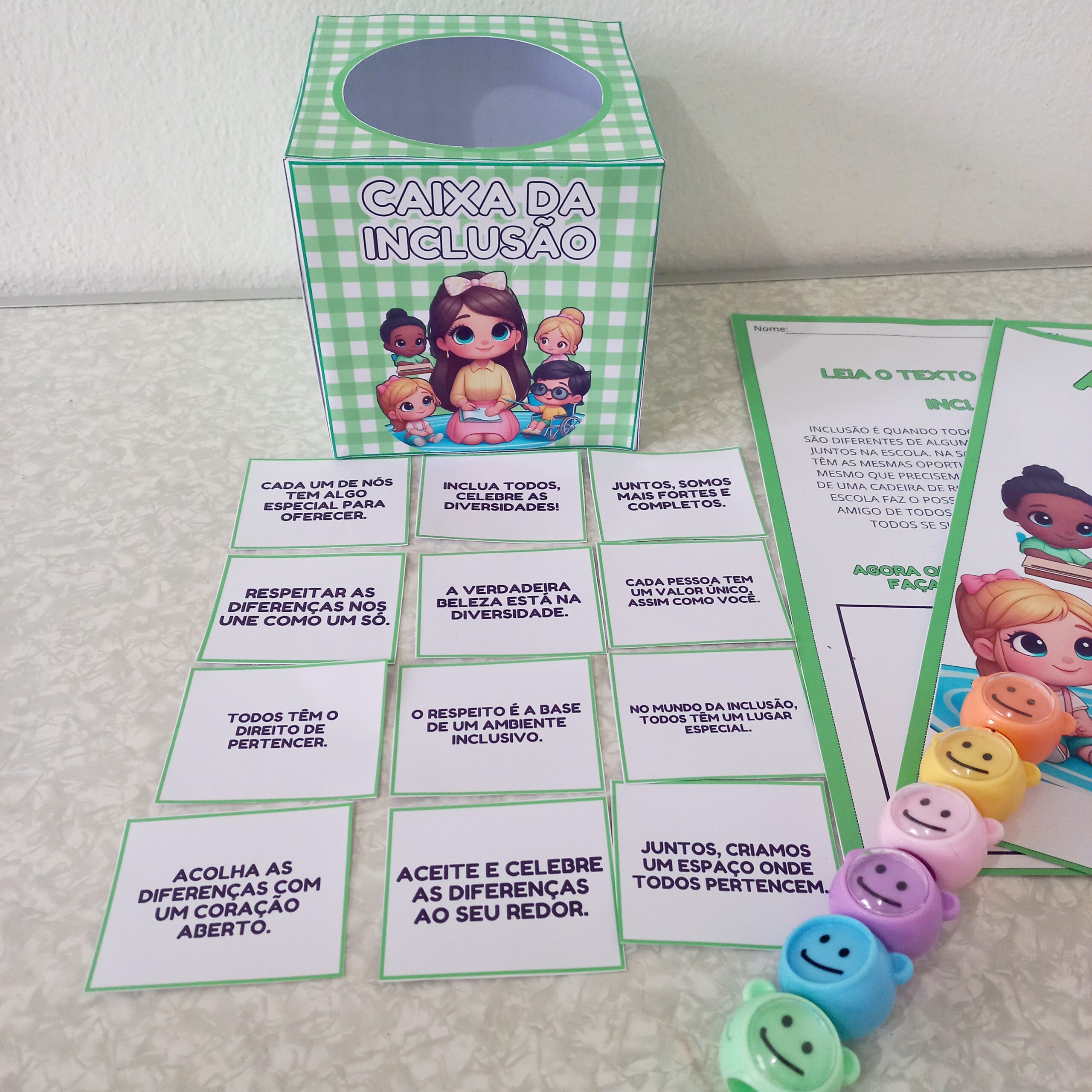 ➡️”Promova a inclusão de forma lúdica e significativa! A ‘Caixa da inclusão’ é um recurso pedagógico projetado para ajudar as crianças a compreender e valorizar a diversidade. Este material Incentiva o respeito e a empatia, criando um ambiente acolhedor onde todos se sentem parte.
