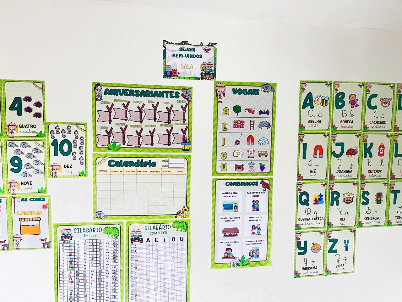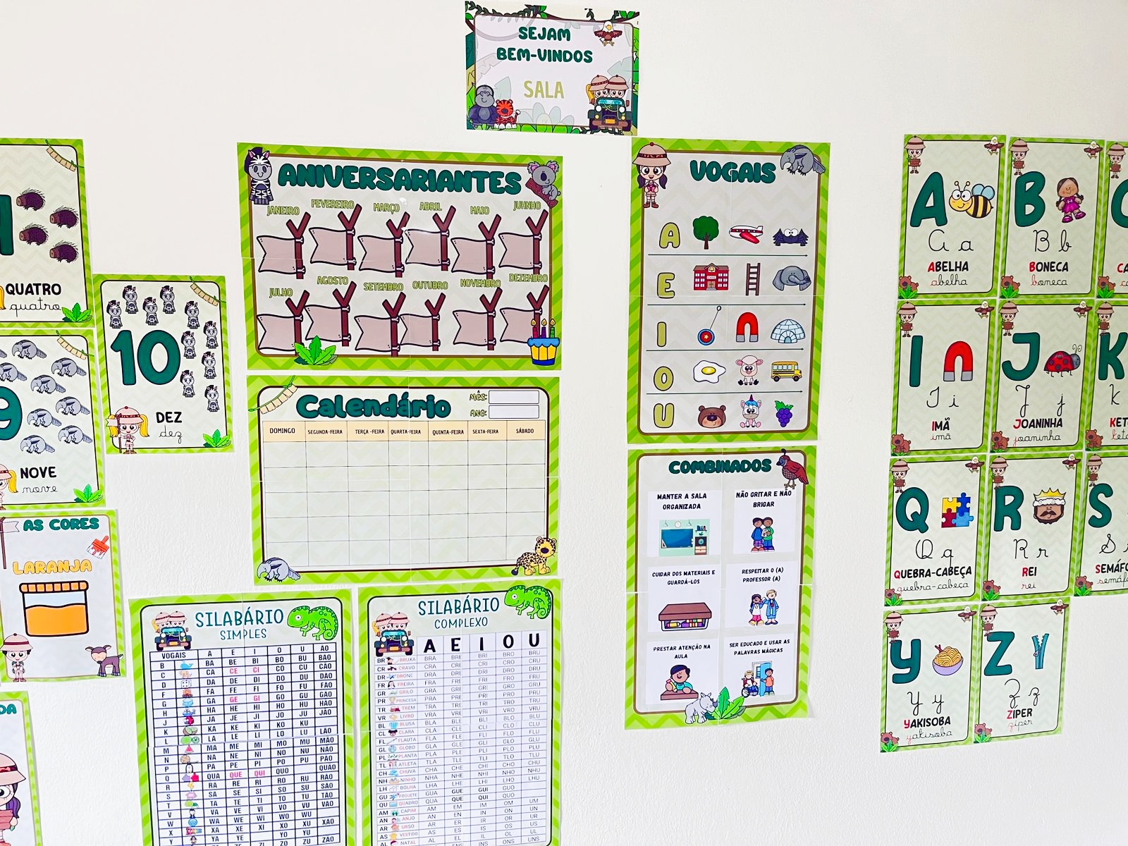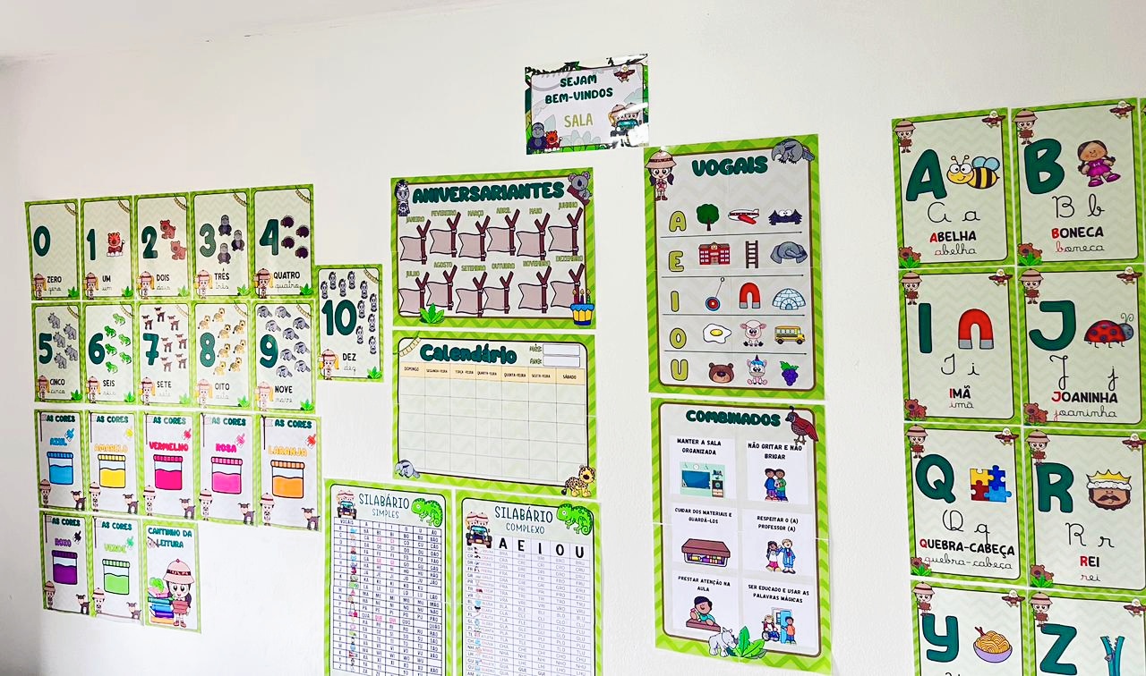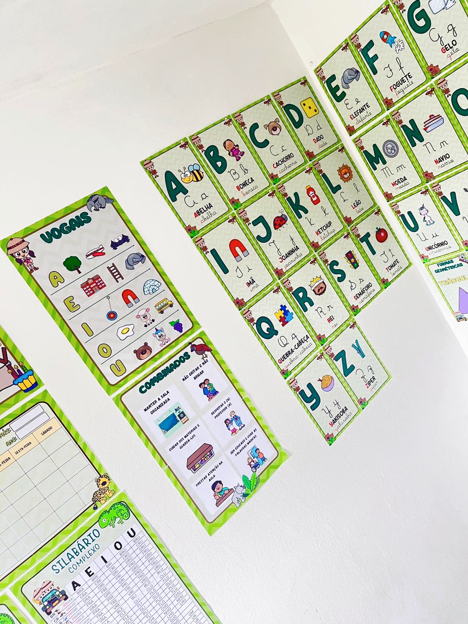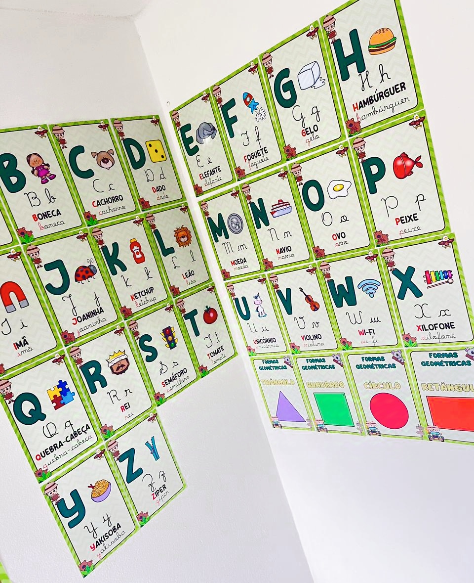Alfabeto completo ilustrado (letras bastão e cursiva)
